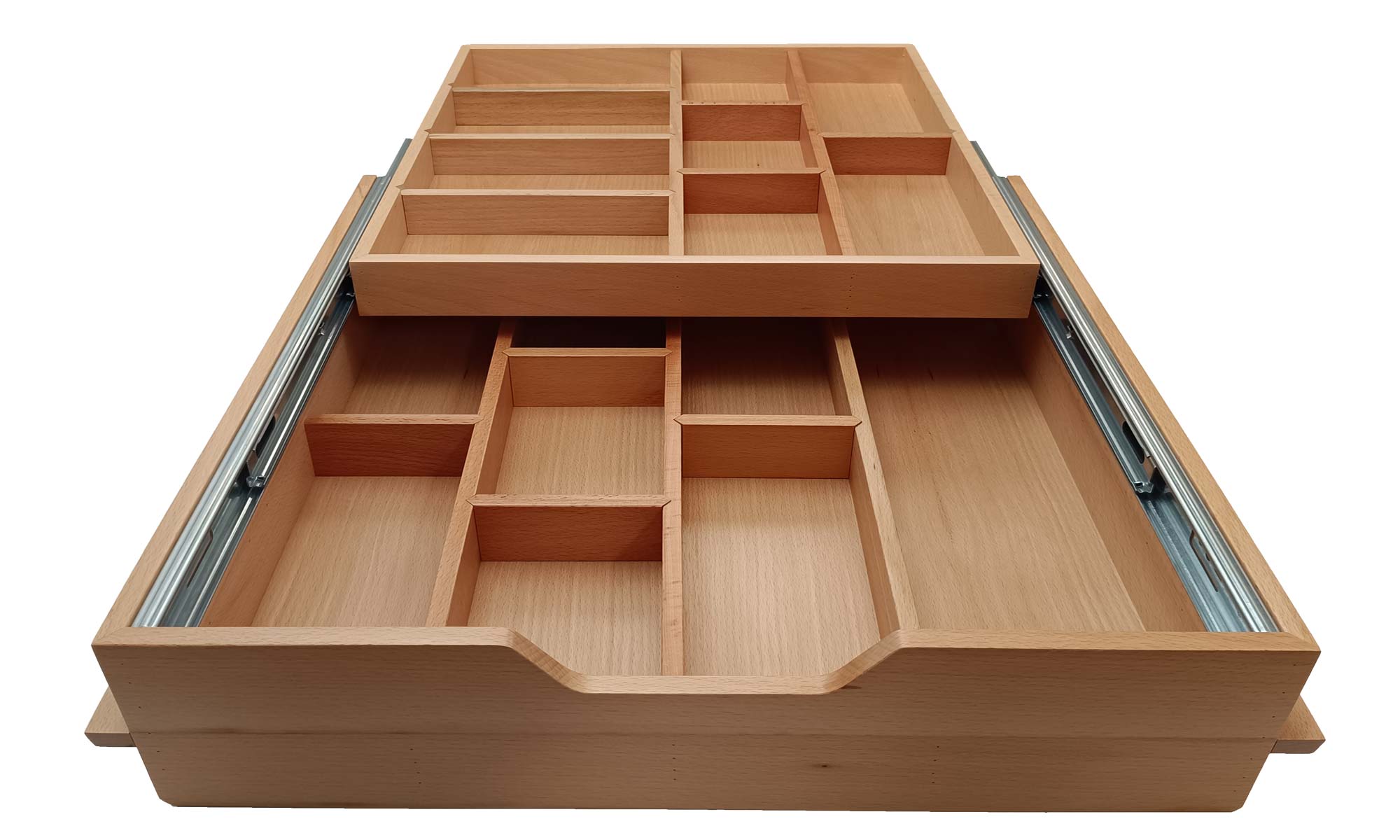 KAYIN %100 El Yapımı Çift Katlı Kayın Ahşap Çekmece İçi Kaşıklık – 60’lık Modül
