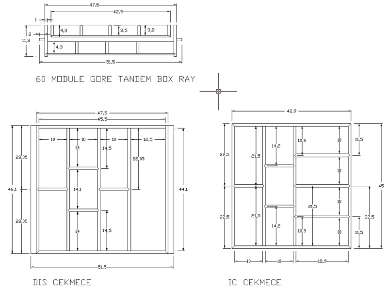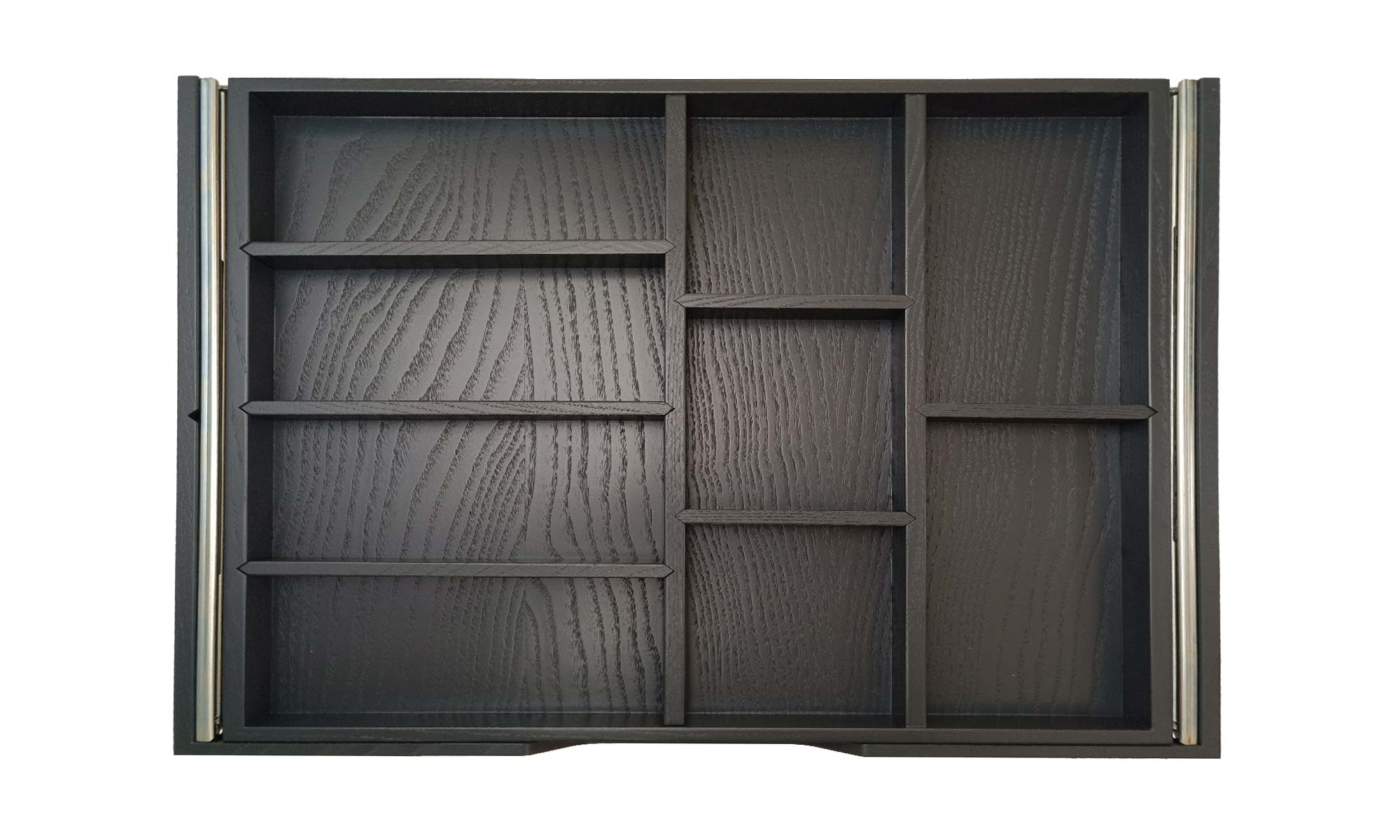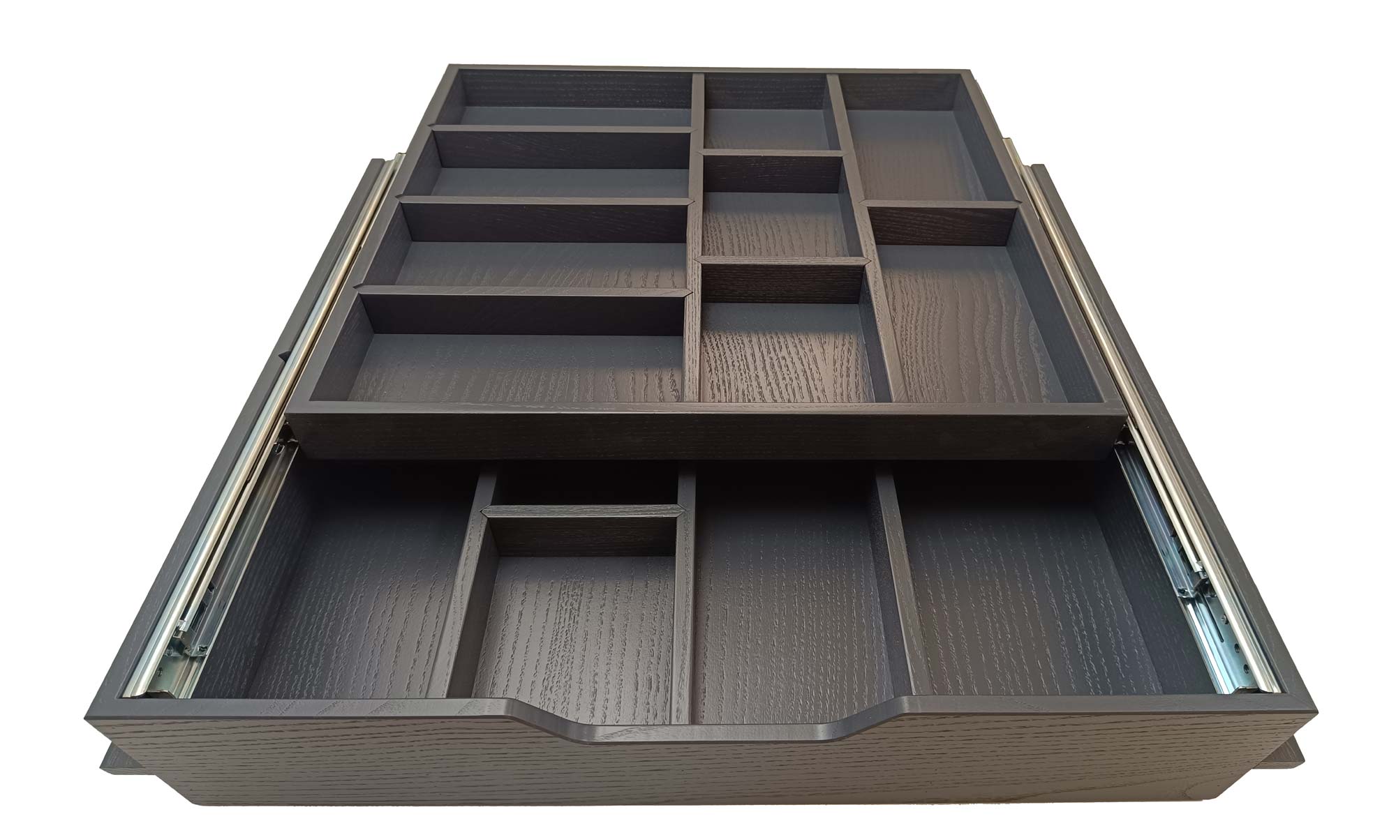 %100 El Yapımı Çift Katlı Antrasit Boyalı Dişbudak Ahşap Çekmece İçi Kaşıklık – 60’lık Modül