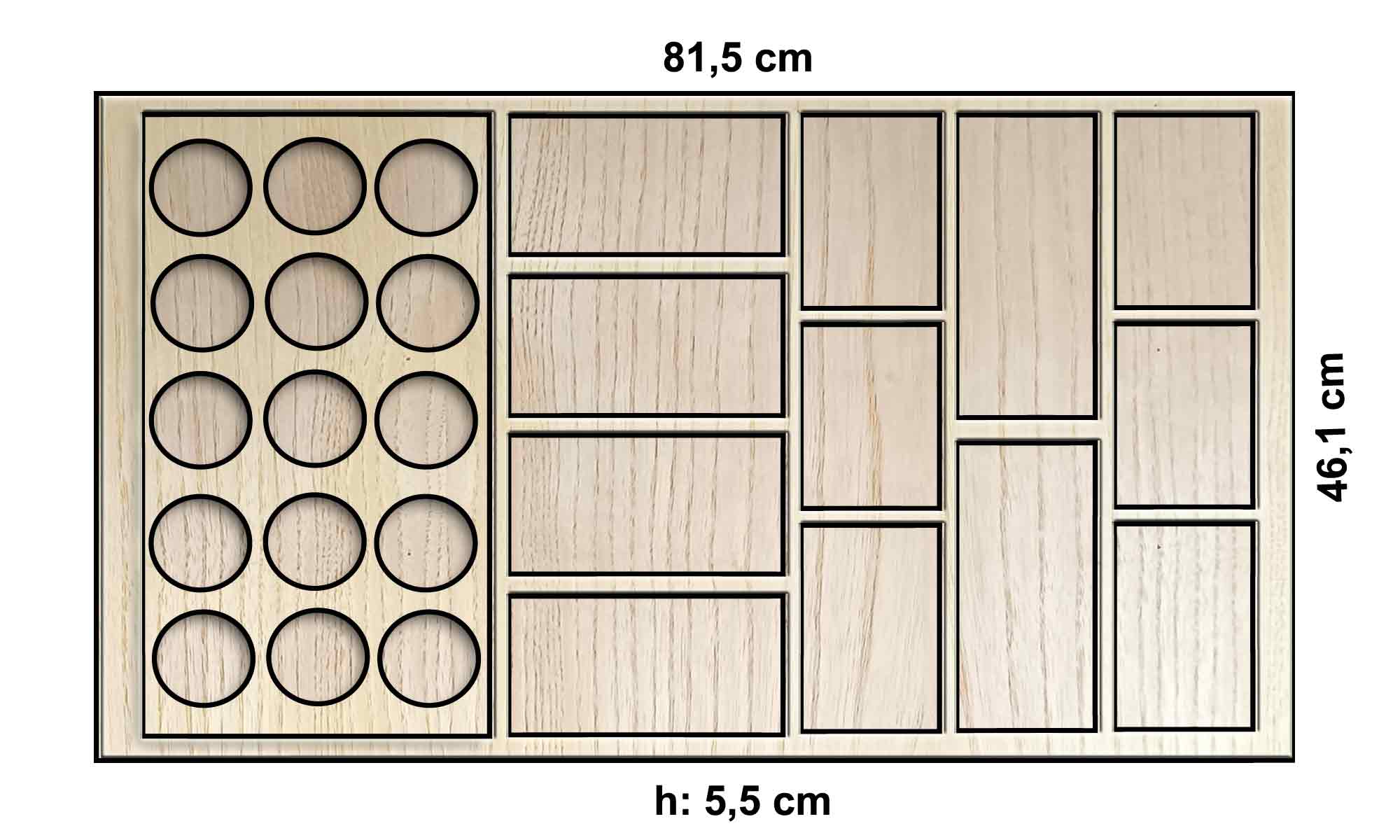 Ceviz ağacının estetik ve dayanıklı dokusunu, akılcı bir mutfak düzeniyle birleştiren bu özel model; çekmece içi kullanım için tasarlanmış, %100 el yapımı bir üründür.