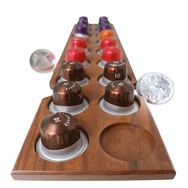 Hem kahve severler hem de düzen sevenler için mükemmel bir çözüm sunan Ahşap Nespresso Kapsül Standı, kahve deneyiminizi bir üst seviyeye taşımak için burada!