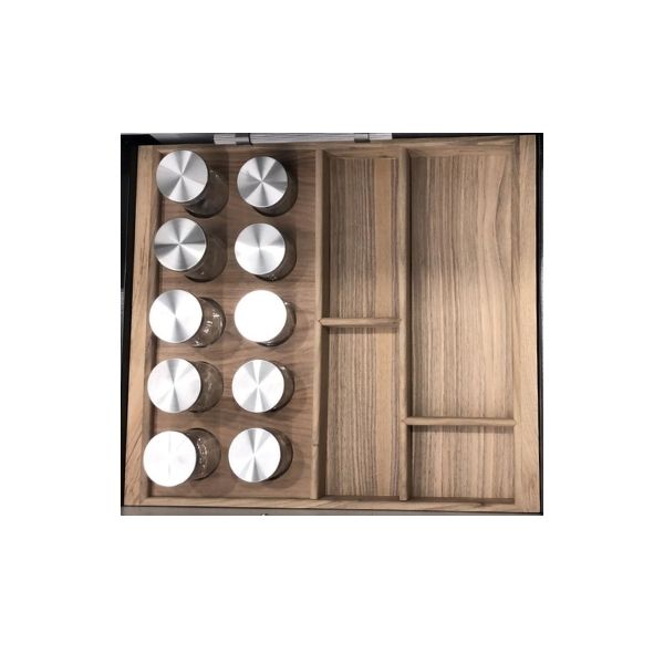 Ceviz ağacının estetik ve dayanıklı dokusunu, akılcı bir mutfak düzeniyle birleştiren bu özel model; çekmece içi kullanım için tasarlanmış, %100 el yapımı bir üründür. Platform, kaşıklığın içine sabitlenmiştir.