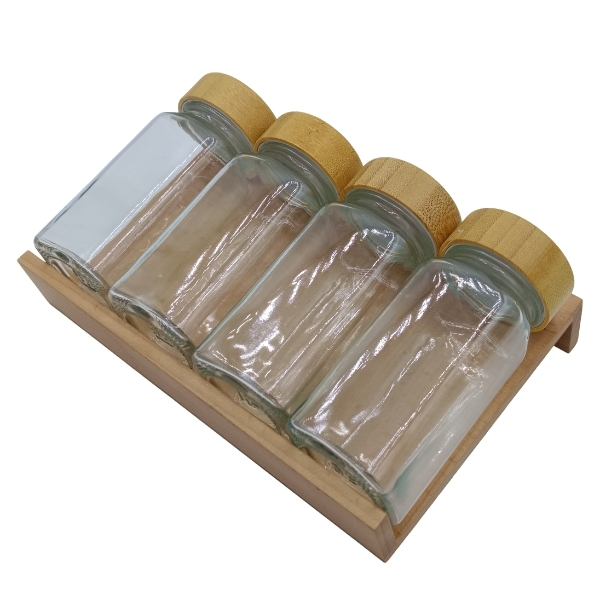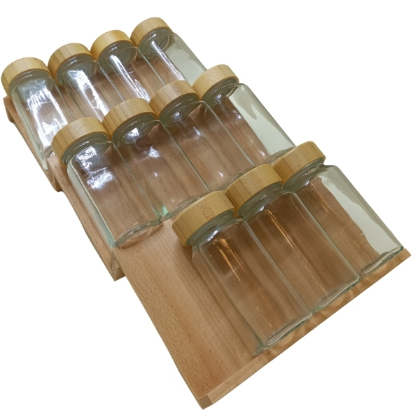 Modüler merdiven baharatlık (kare kavanoz): Ceviz modüler merdiven baharatlık