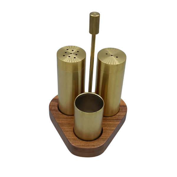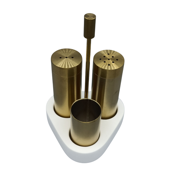 1 adet tuzluk (PVD Altın Kaplama, 304 Kalite mat paslanmaz)(Ø:32mm H:90mm) 1 adet karabiberlik (PVD Altın Kaplama, 304 Kalite mat paslanmaz)(Ø:32mm H:90mm) 1 adet kürdanlık (PVD Altın Kaplama, 304 Kalite mat paslanmaz)(Ø:32mm H:55mm) Amerikan cilalı antrasit boyalı dişbudak ağacı(Genişlik: 9,6 cm, ...Devamını oku