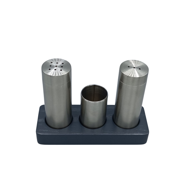 1 adet tuzluk (304 Kalite mat paslanmaz)(Ø:32mm H:90mm) 1 adet karabiberlik (304 Kalite mat paslanmaz)(Ø:32mm H:90mm) 1 adet kürdanlık (304 Kalite mat paslanmaz)(Ø:32mm H:55mm) Amerikan cilalı antrasit boyalı dişbudak ağacı(Genişlik: 9,6 cm, En: 9 cm, Yükseklik:15-18 mm) ...Devamını oku