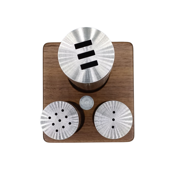 3'lü Kare Baharatlık(Mat Paslanmaz): Cilalı Ceviz Stand