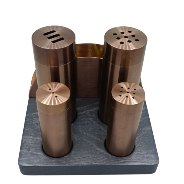 Peçetelikli Baharatlık(PVD Bakır): Doğal yağlı Ceviz Stand