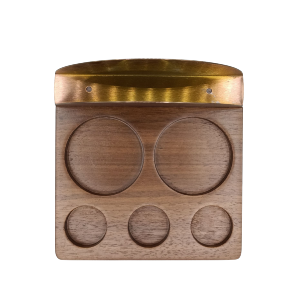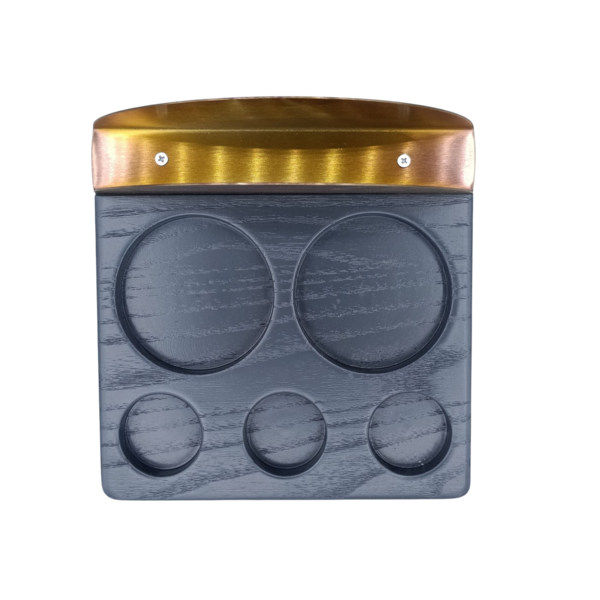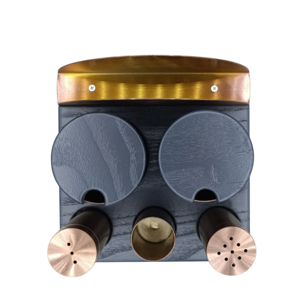 4. 2 adet ahşap kapaklı şekerlik (PVD Bakır Kaplama, 430 Kalite mat paslanmaz)(Ø:60mm H:60mm)