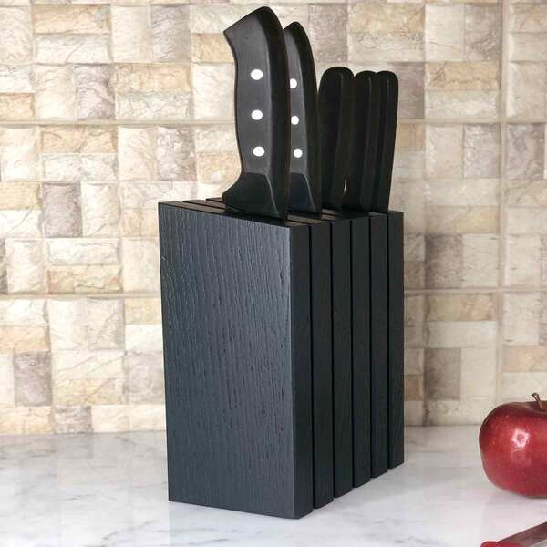 Üst kısmına verilen özel açı, hem şık bir duruş sunar hem de bıçakların daha güvenli ve dengeli şekilde durmasına yardımcı olur. Dikey formu sayesinde tezgah üzerinde minimum alan kaplarken maksimum kullanım kolaylığı sağlar.