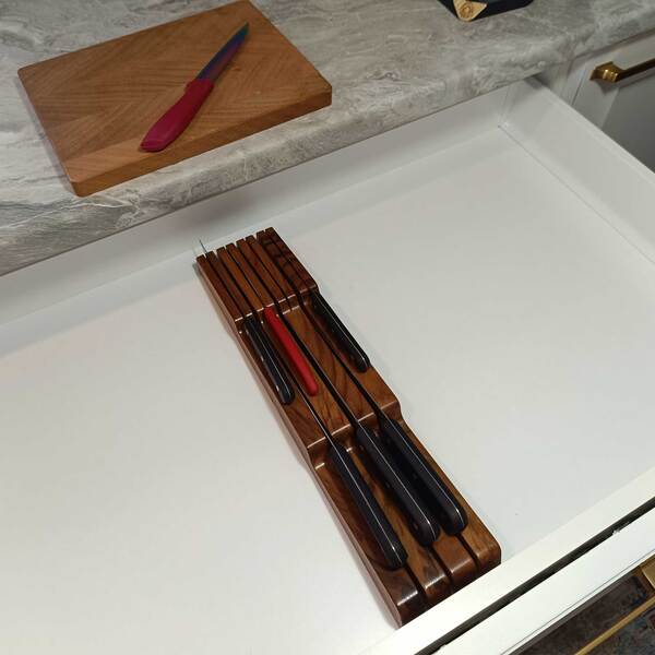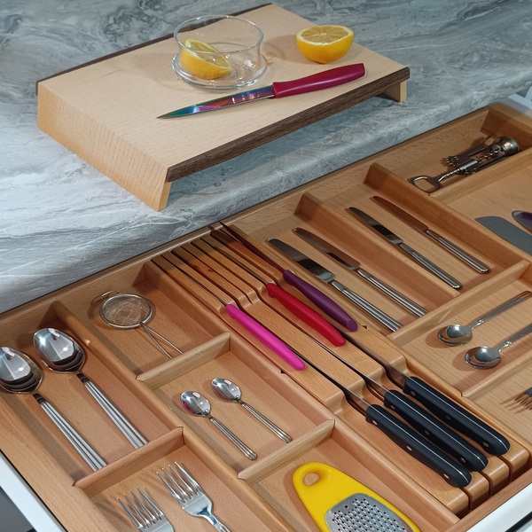- Çok yönlü kullanım: Sıkça kullandığınız bıçaklarınızı çekmece içinde düzenli tutabilecek hemde kullanmak istediğinizde modüler olarak tezgah üzerine çıkararak bıçaklarınıza kolay ulaşabileceksiniz.