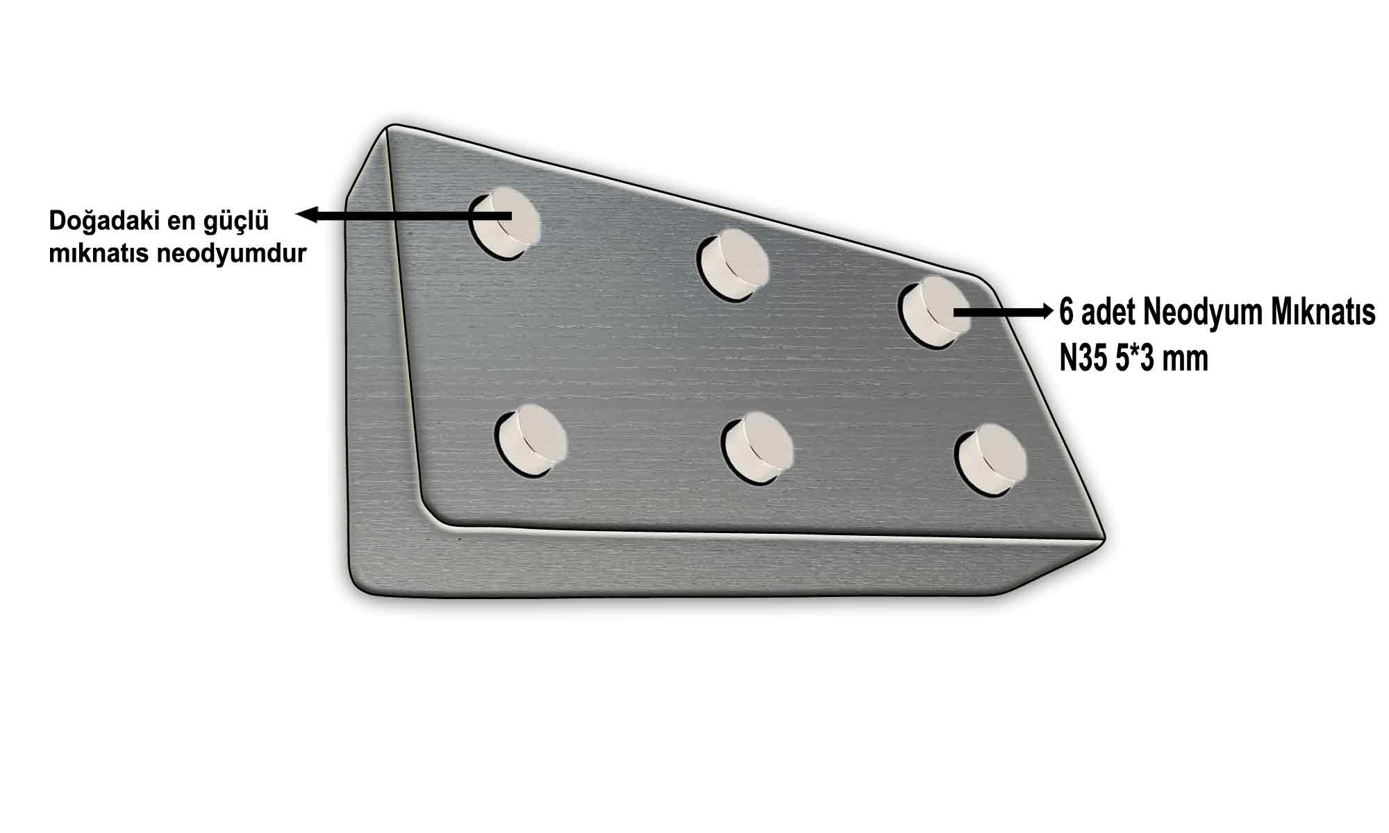 Amerikan cilasıyla boyanmış antrasit renkli dişbudak ağacı, yüzeydeki tellenmiş dokularıyla ahşabın estetik ruhunu modern çizgilerle birleştiriyor. %100 el yapımı bu modelde de 6 adet güçlü neodyum mıknatıs kullanılmıştır. Modern tasarım severlerin vazgeçilmezi olacak bir model.