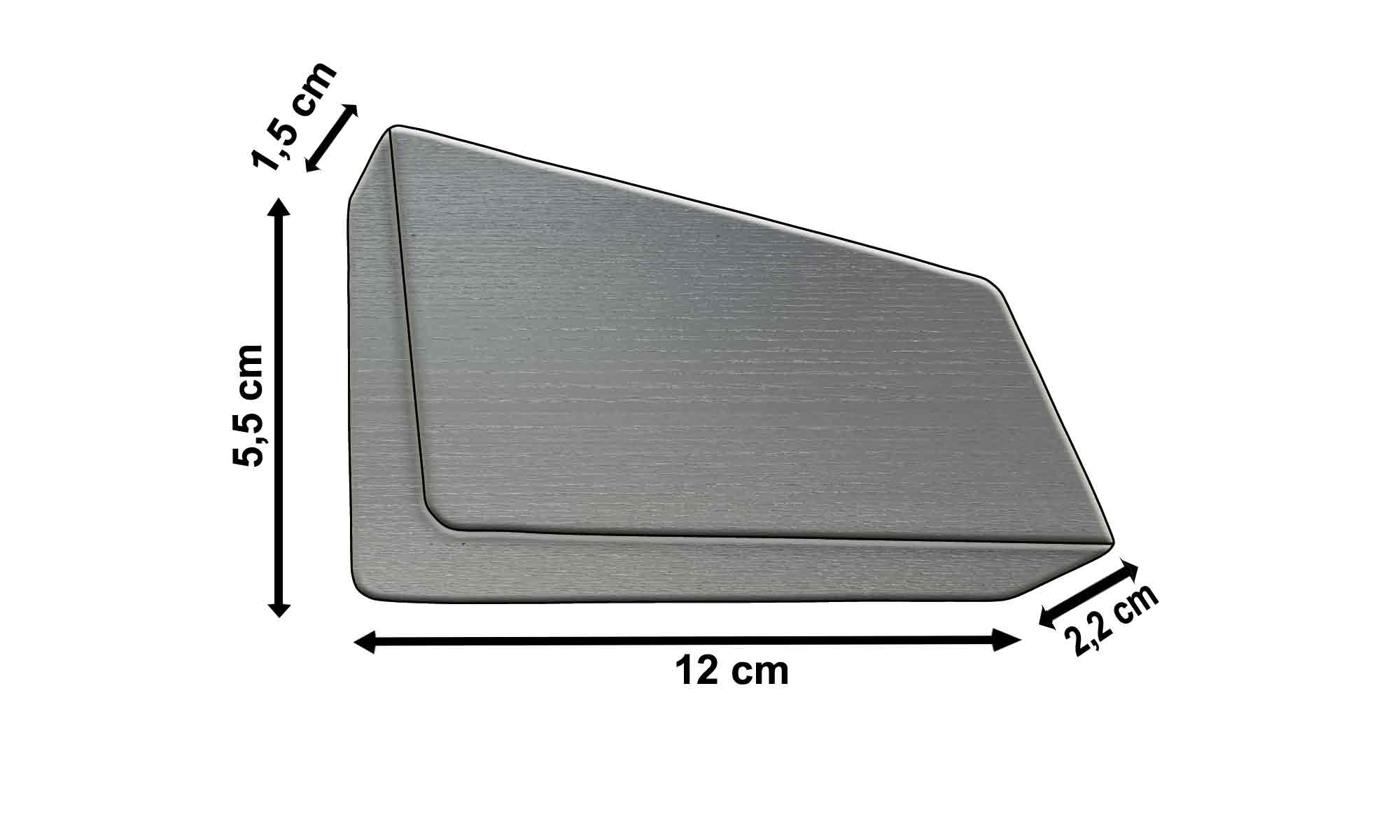 Ağaç Türü: Dişbudak (antrasit renkli) – Tellenmiş yüzeyiyle damar yapısı ön plana çıkarılmıştır Cila: Amerikan antrasit boya (solvent bazlı) Boyut: Genişlik 12 cm x Derinlik 1,5-2,2 cm x Yükseklik 5,5 cm Bıçak Kapasitesi: 3 adet Montaj: Deliksiz, kolay montaj – çift taraflı bant ile Mıknatıs Özelliği: 6 adet 10 mm çap x 5 mm derinliğinde neodyum mıknatıs