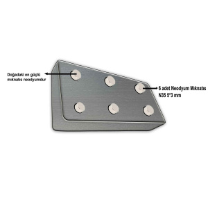 Ağaç Türü: Kayın – Sert, dayanıklı ve homojen yapısıyla bilinir Cila: Solvent bazlı cila ile yüzey koruması sağlanmıştır Boyut: Genişlik 12 cm x Derinlik 1,5-2,2 cm x Yükseklik 5,5 cm Bıçak Kapasitesi: 3 adet Montaj: Aletsiz ve deliksiz montaj – çift taraflı bant dahildir Mıknatıs Özelliği: 6 adet 10x5 mm neodyum mıknatıs içerir