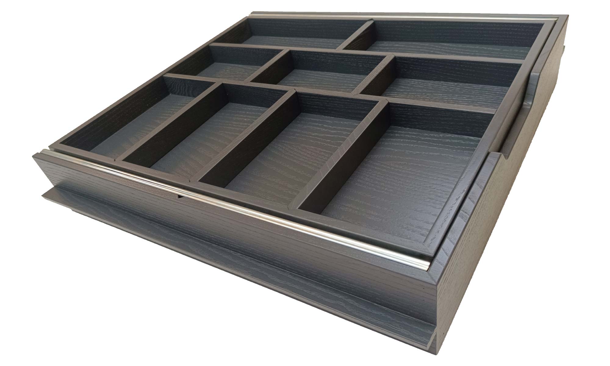 %100 El Yapımı Çift Katlı Antrasit Boyalı Dişbudak Ahşap Çekmece İçi Kaşıklık – 60’lık Modül