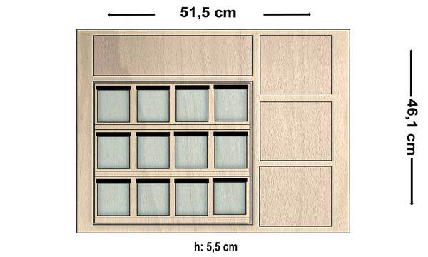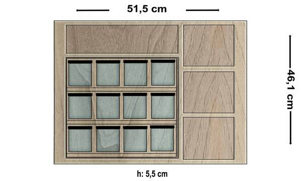 Dişbudak ağacından üretilmiş bu özel model, mutfağını hem düzenli hem de şık tutmak isteyen kullanıcılar için tasarlanmıştır. Kaşıklık içine entegre edilen yatık baharat platformu, çekmece içindeki baharat kavanozlarının görünürlüğünü artırır.