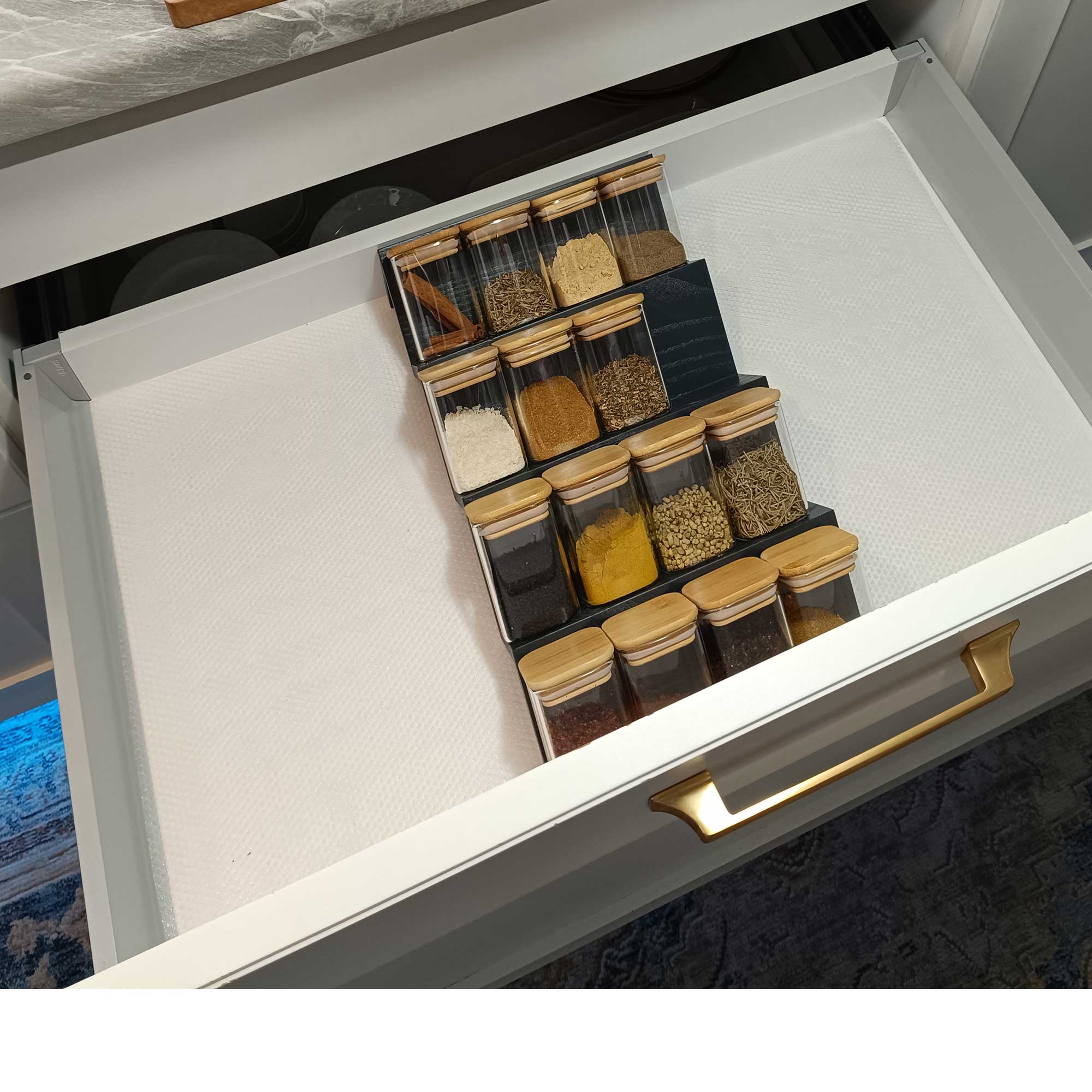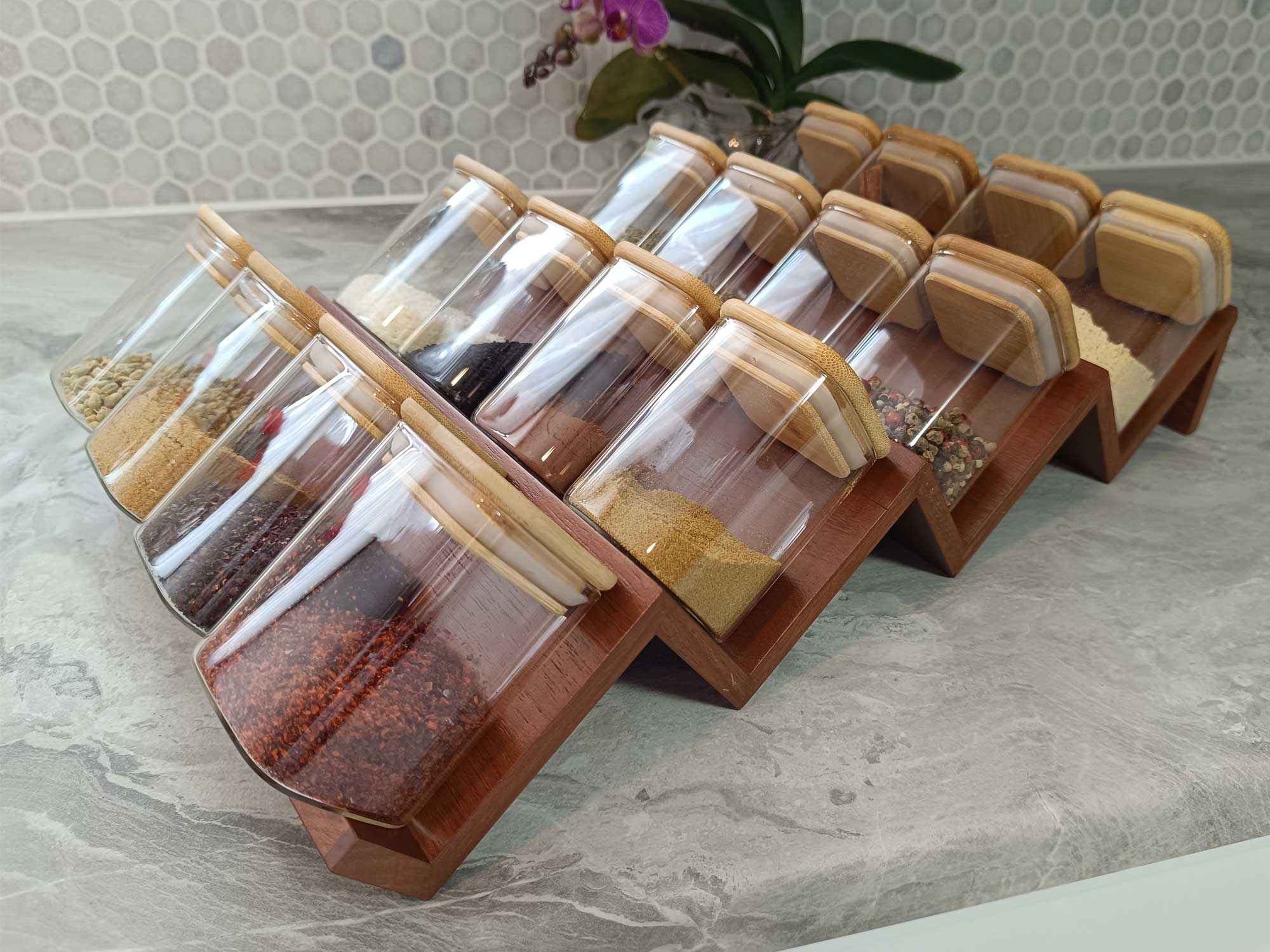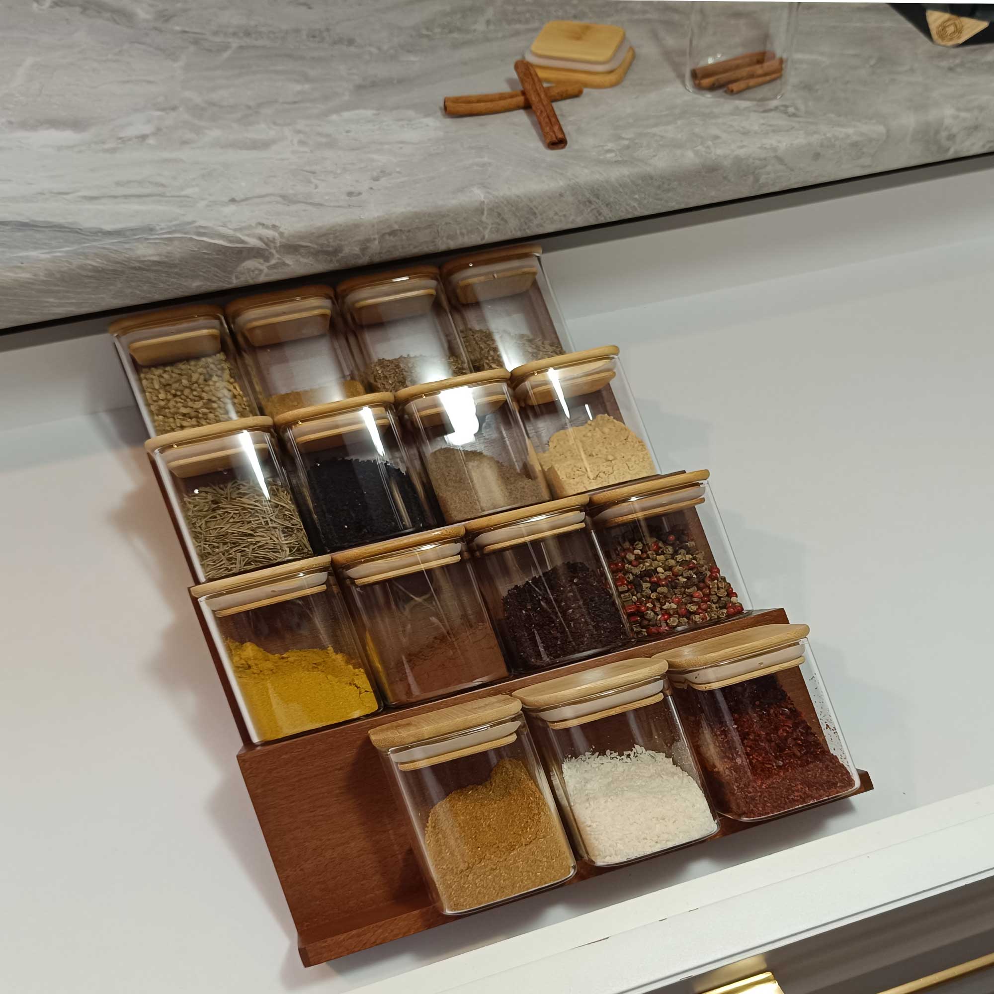 Kayın ağacının sade, açık tonları ve güçlü yapısıyla tasarlanan bu baharatlık, çekmece içi düzen arayan kullanıcılar için ideal bir seçimdir. Merdiven platformu sayesinde baharat kavanozlarını düzenli bir şekilde sıralayabilir ve içeriklerini kolayca görebilirsiniz. 16 adet baharat kapasiteli merdiven basamaklı platform tasarımı, fonksiyonel olduğu kadar dekoratif bir çözüm sunar.
