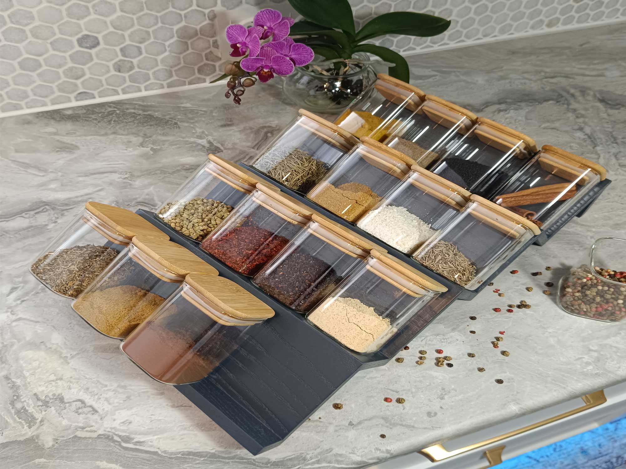 16 adet 150 ml kare cam kavanoz kapasitesine sahiptir. Platform, kaşıklığın içine yerleştirilebildiği gibi ayrı da kullanılabilir.