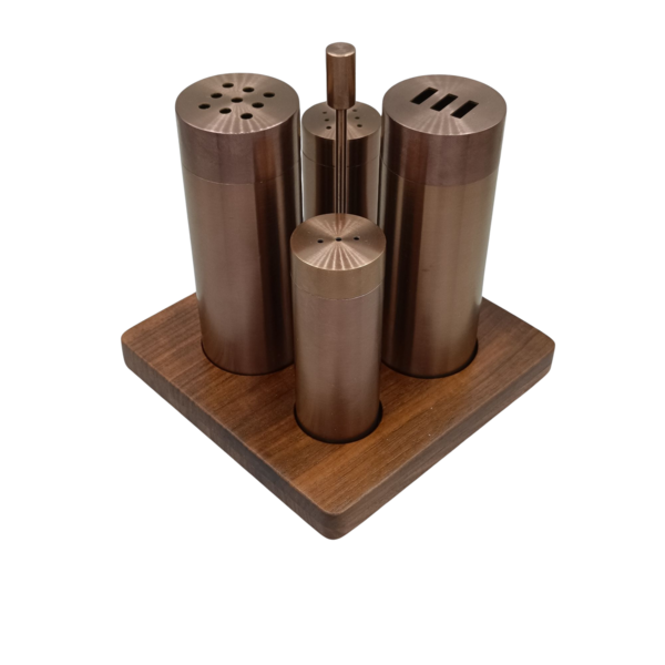 4'lü Çapraz Baharatlık(PVD Bakır): Doğal yağlı Ceviz Stand