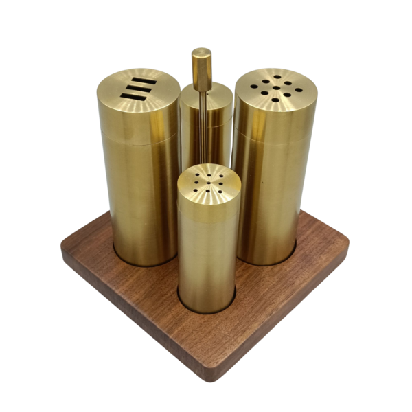 4'lü Çapraz Baharatlık(PVD Altın): Doğal yağlı Ceviz Stand
