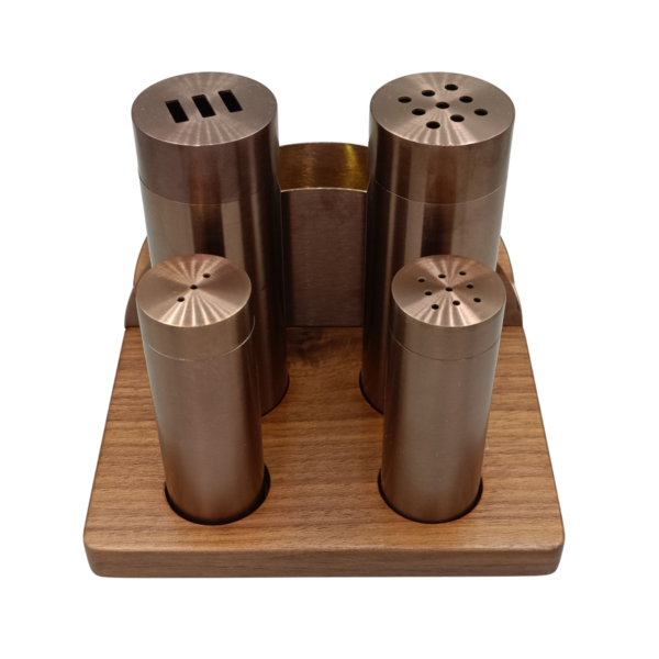 Peçetelikli Baharatlık(PVD Bakır): Doğal yağlı Ceviz Stand