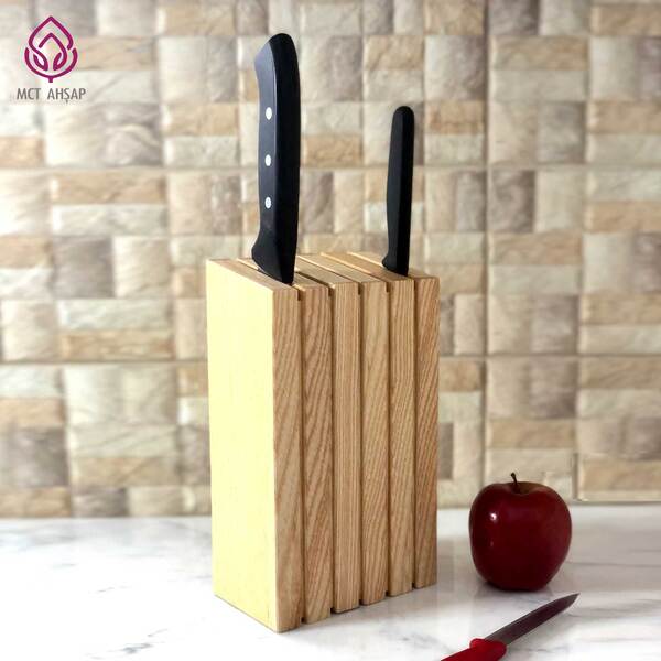 Üst kısmına verilen özel açı, hem şık bir duruş sunar hem de bıçakların daha güvenli ve dengeli şekilde durmasına yardımcı olur. Dikey formu sayesinde tezgah üzerinde minimum alan kaplarken maksimum kullanım kolaylığı sağlar.