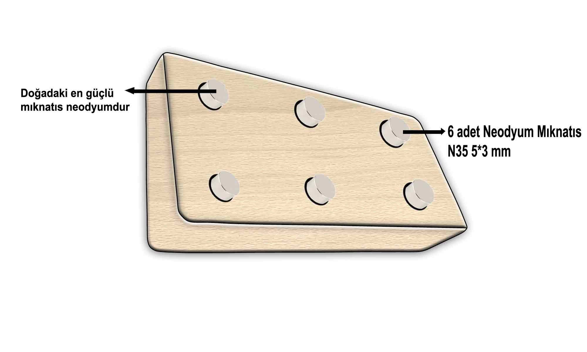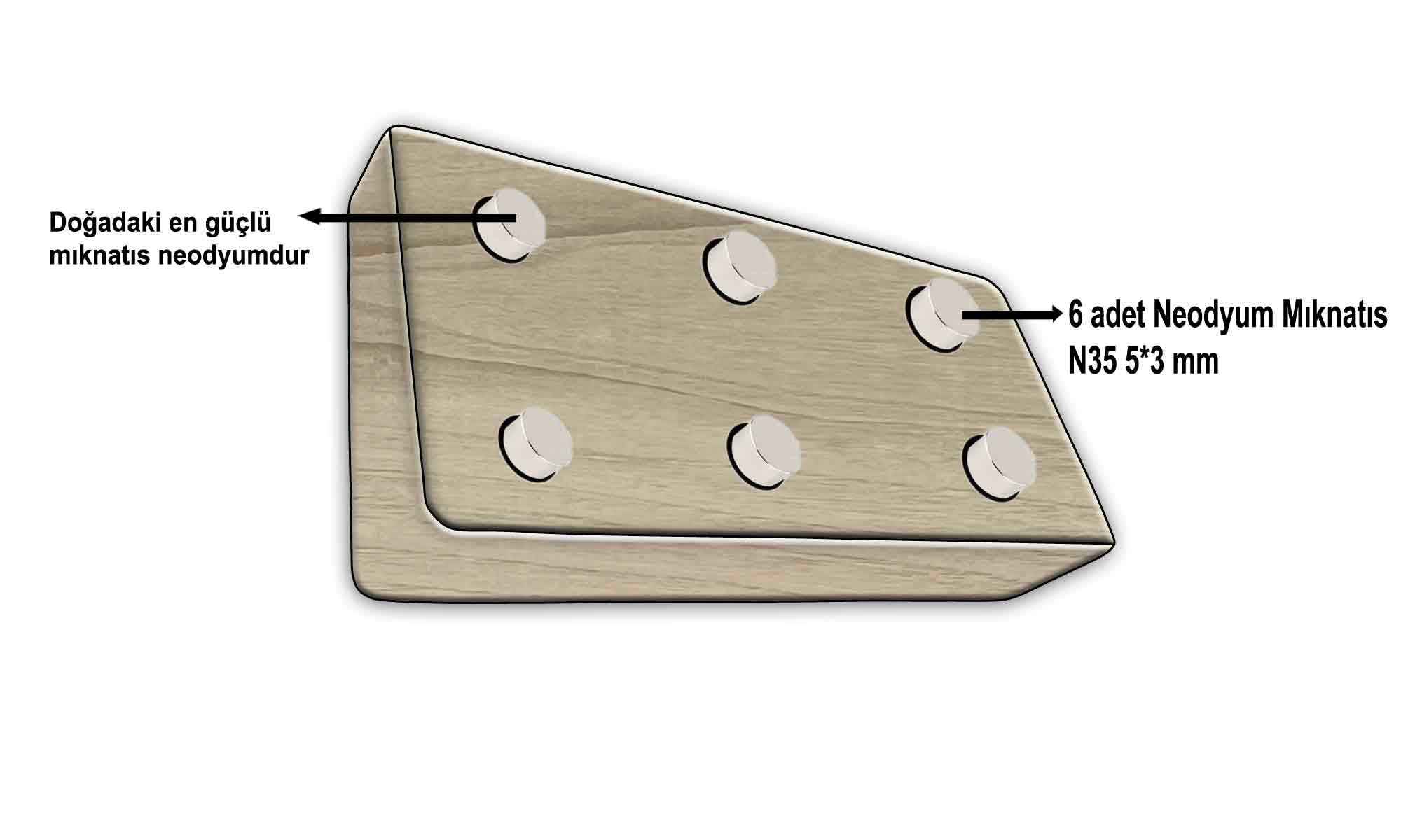 Amerikan cilasıyla boyanmış antrasit renkli dişbudak ağacı, yüzeydeki tellenmiş dokularıyla ahşabın estetik ruhunu modern çizgilerle birleştiriyor. %100 el yapımı bu modelde de 6 adet güçlü neodyum mıknatıs kullanılmıştır. Modern tasarım severlerin vazgeçilmezi olacak bir model.