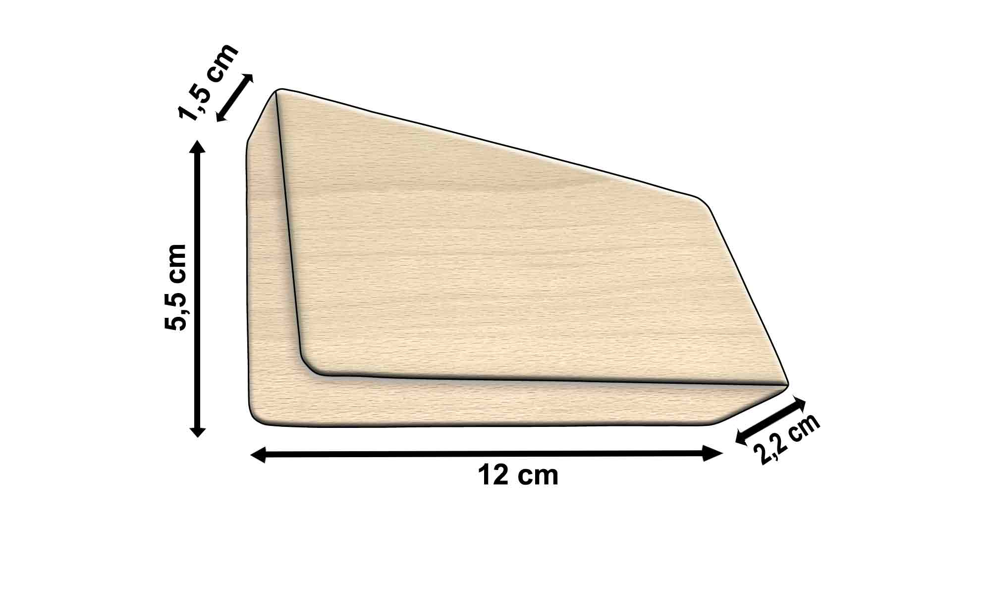 Ağaç Türü: Kayın – Sert, dayanıklı ve homojen yapısıyla bilinir Cila: Solvent bazlı cila ile yüzey koruması sağlanmıştır Boyut: Genişlik 12 cm x Derinlik 1,5-2,2 cm x Yükseklik 5,5 cm Bıçak Kapasitesi: 3 adet Montaj: Aletsiz ve deliksiz montaj – çift taraflı bant dahildir Mıknatıs Özelliği: 6 adet 10x5 mm neodyum mıknatıs içerir